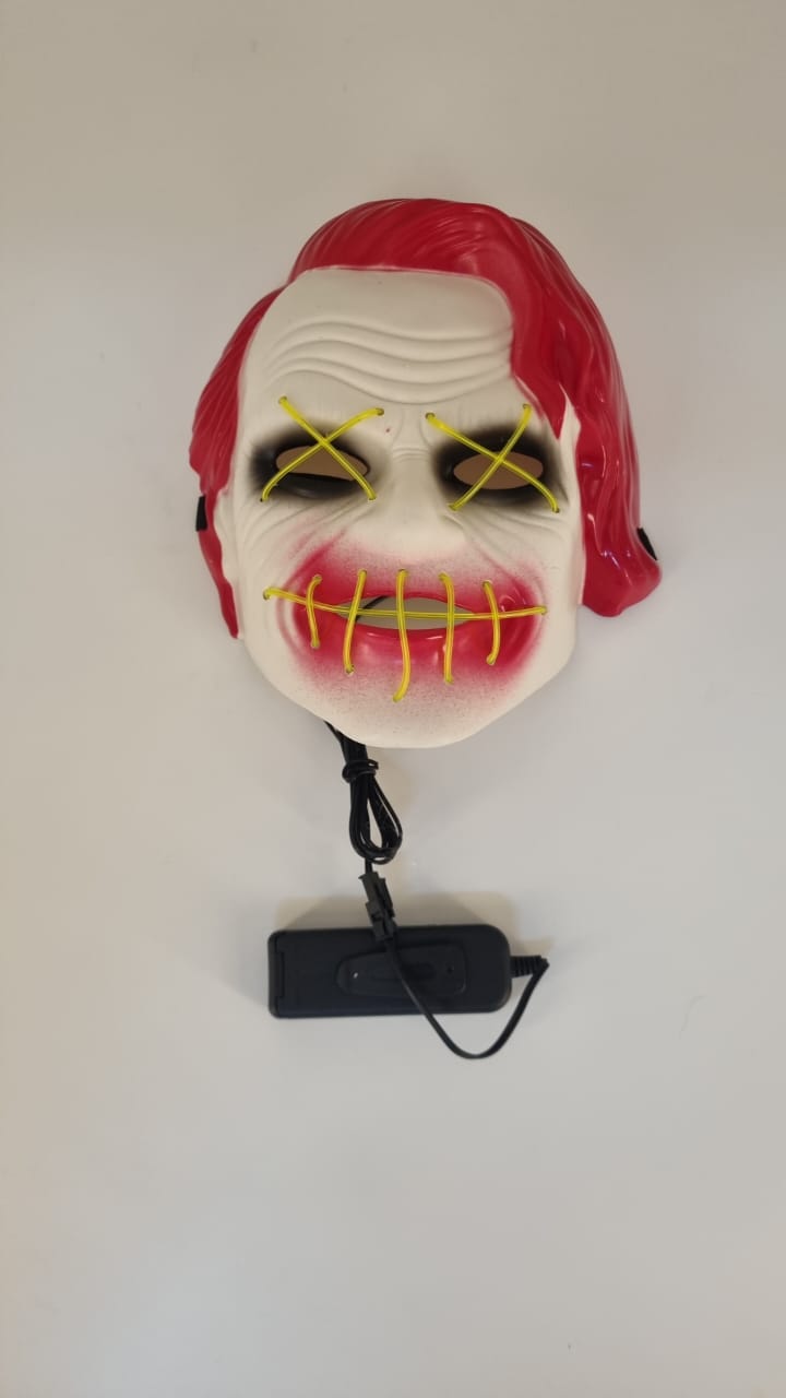 Joker Mask with Red Hair & Yellow LED Lights – Bold & Unsettling 🎭💛