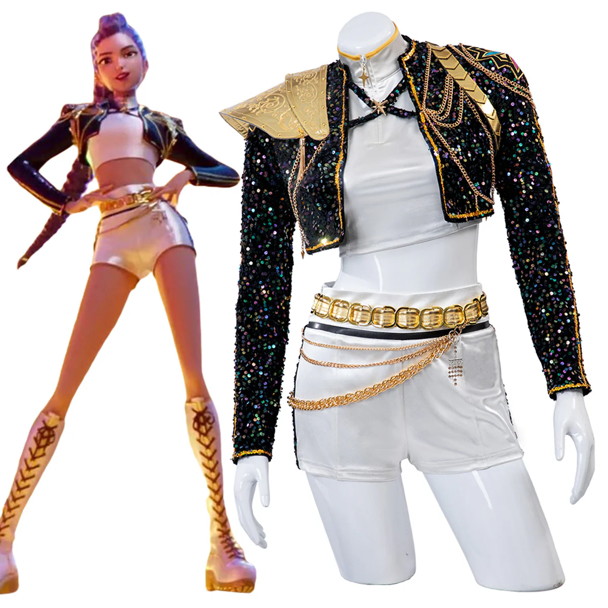 Complete the look with Rumi’s signature boots, fingerless gloves, and optional demon-inspired makeup or props to embody her full power and stage presence. Perfect for fans of K-pop, gaming, or anyone ready to slay both demons and the dance floor!
