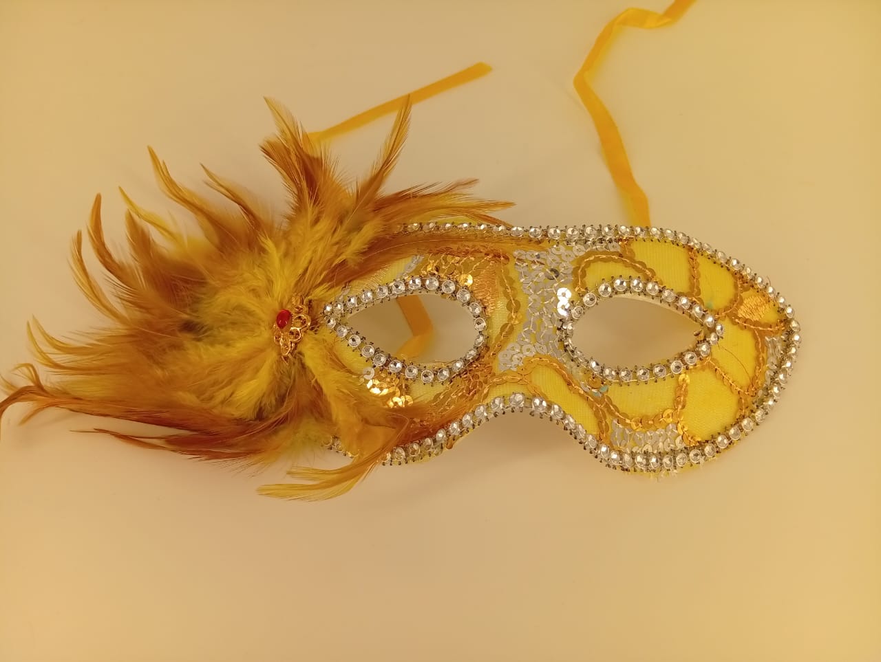 Embrace elegance and sophistication with our Gold Lacey Sequin Masquerade Mask. This exquisite mask features delicate lacey detailing combined with shimmering gold sequins, creating a dazzling, eye-catching effect. The feather flower on the side adds a touch of drama and refinement, making it the perfect accessory for any masquerade ball, costume party, or special occasion.