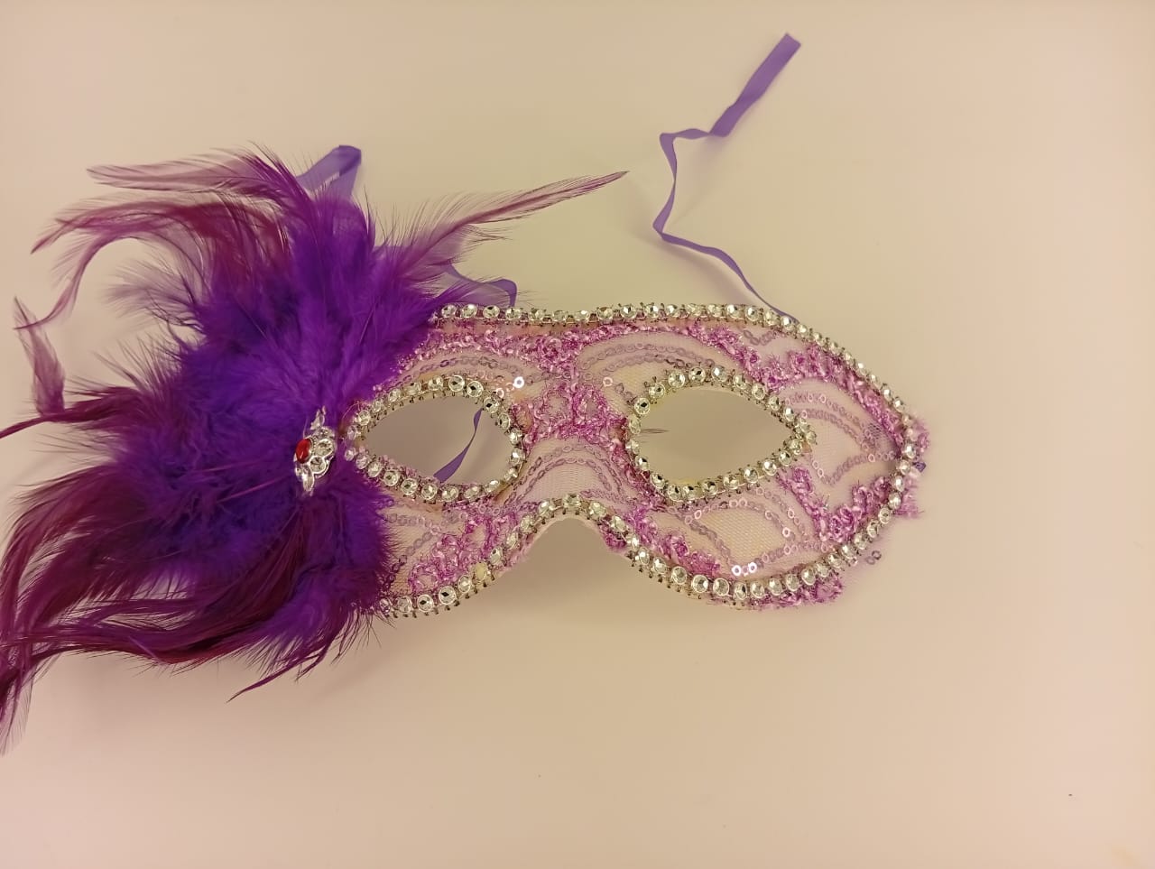 Step into a world of mystery and elegance with our Purple Lacey Sequin Masquerade Mask. Featuring intricate lace detailing paired with shimmering purple sequins, this mask creates a mesmerizing and sophisticated look. The feather flower on the side adds an extra layer of glamour and drama, making it the perfect accessory for any masquerade ball, costume party, or special occasion.