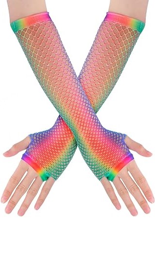 Introducing long rainbow Net Gloves bold and vibrant accessories that add a pop of color and flair to any outfit. Crafted with lightweight red netting, these gloves offer a stylish and eye-catching look, perfect for making a statement at parties, concerts, or special events. Ideal for adding a touch of edgy sophistication to your ensemble.