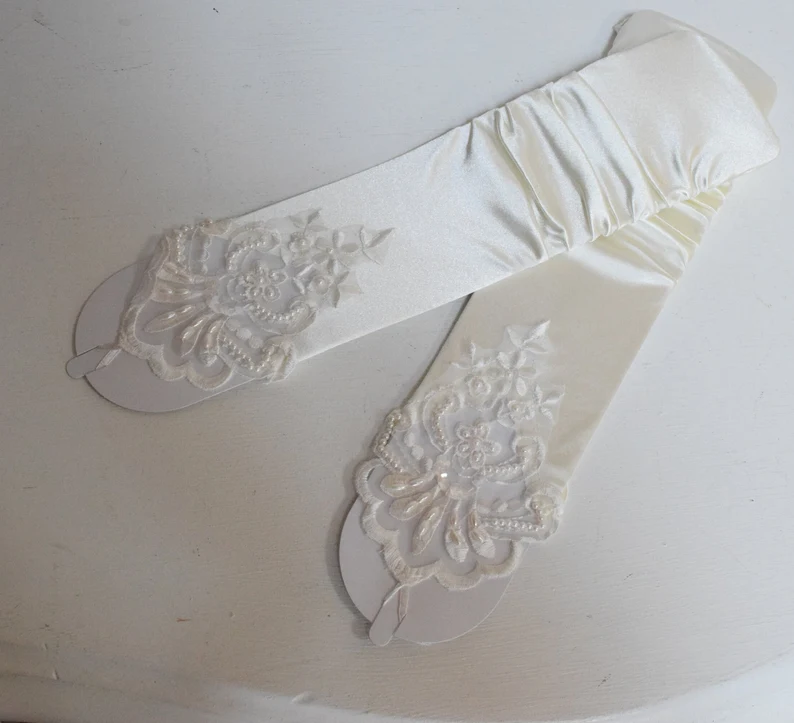 Introducing Long White Shiny Gloves with Embellishments exquisite and luxurious accessories that elevate any ensemble. Crafted with a glossy white fabric and adorned with delicate embellishments, these gloves offer a stylish and glamorous look that is perfect for formal events, weddings, or adding a touch of elegance to everyday wear. Ideal for making a statement and showcasing your impeccable sense of style.