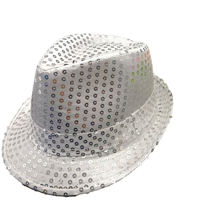 White Silver Sequin Mafia Hat – Elegant and Dazzling