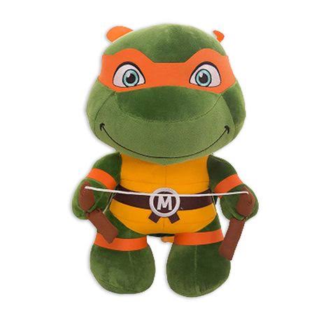 Teenage Mutant Ninja Turtles Michelangelo Plushie: Cowabunga! Meet Michelangelo, the fun-loving and pizza-obsessed member of the Teenage Mutant Ninja Turtles, in plush form. Featuring his signature orange mask, nunchaku, and laid-back personality, this plush is perfect for any TMNT fan looking to add some fun to their collection. Soft, huggable, and full of personality, it’s a must-have for lovers of the series!