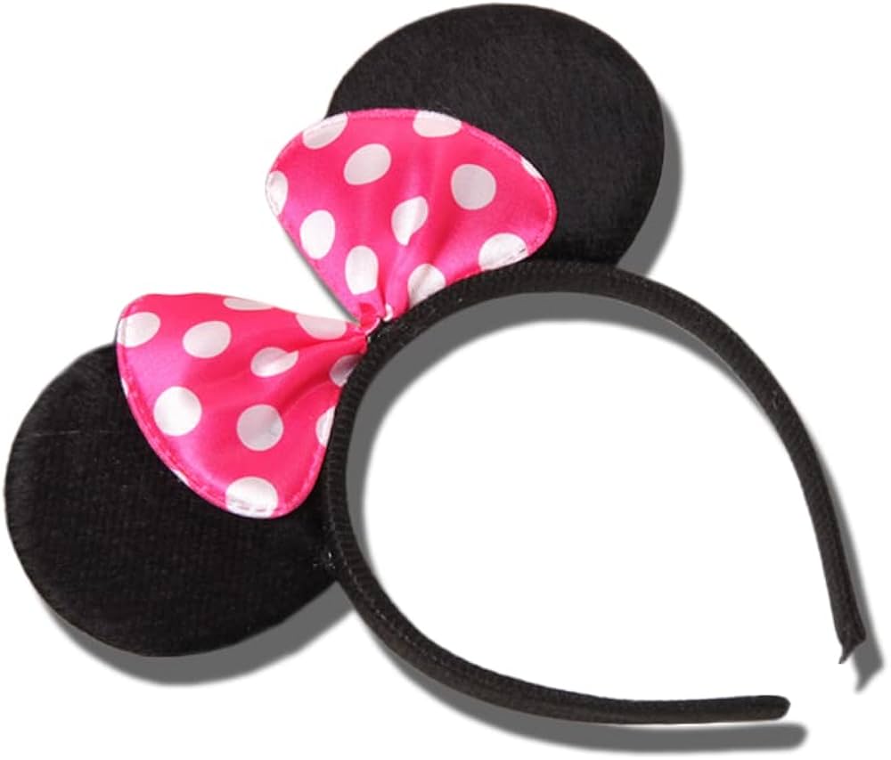 Minnie Mouse Ears with Pink Bow: Complete your Disney-inspired look with these adorable Minnie mouse ears featuring a sweet pink bow! Perfect for theme parks, costume parties, for special occasions, these classic ears add a fun, playful touch to any outfit. Comfortable to wear and charming in design, these Minnie mouse ears with a pink bow are sure to make you the star of the show!