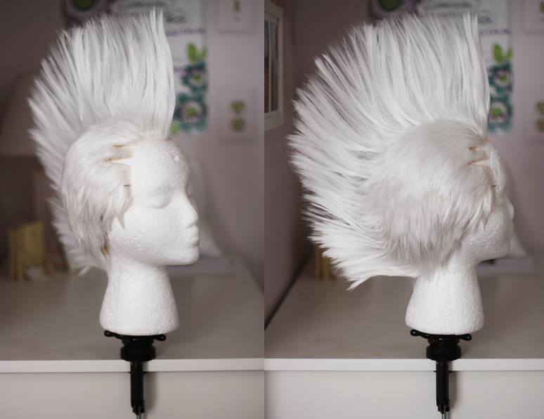 A BOLD white 80s punk mohawk with spiked, vibrant hair, perfect for making a rebellious, edgy statement. Ideal for punk-inspired looks and alternative fashion.