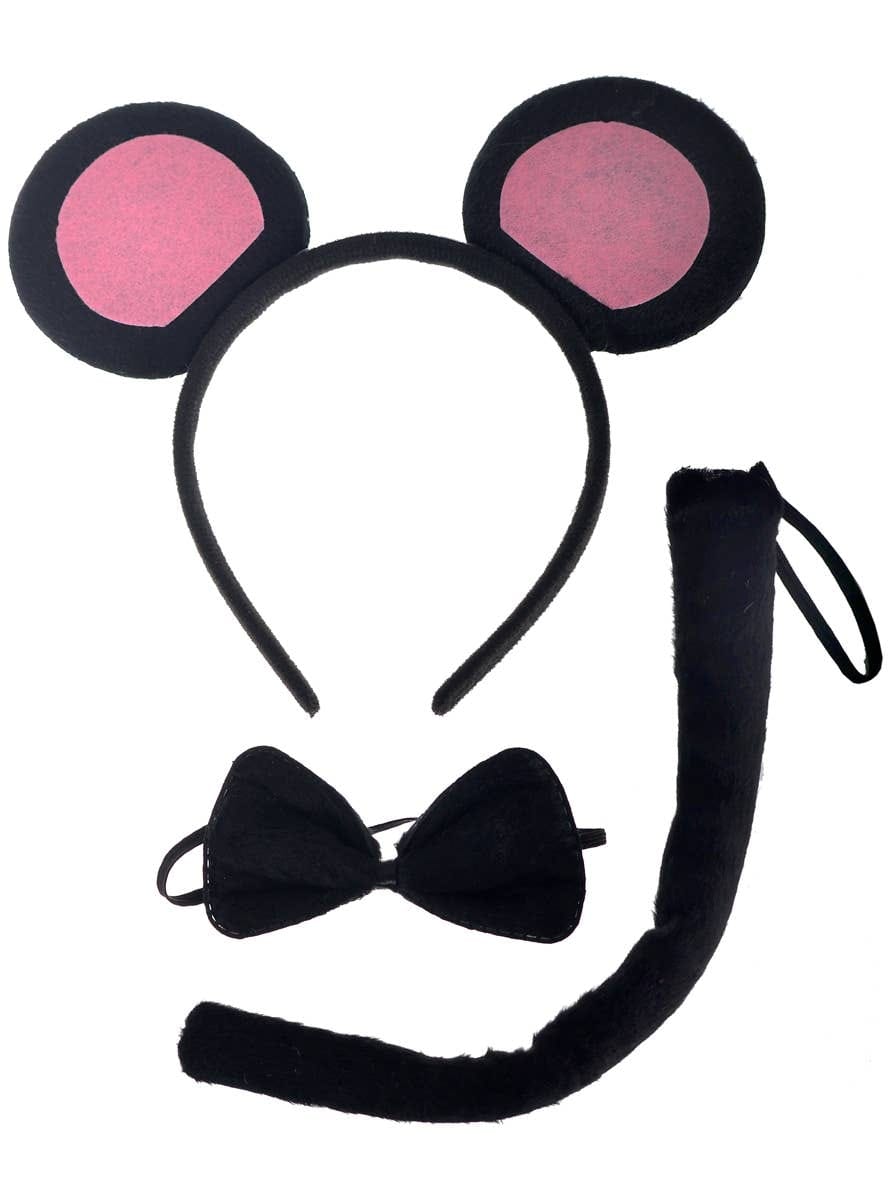 Black Mouse Alice Band with Pink Ears, Tail, and BOW TIE Set