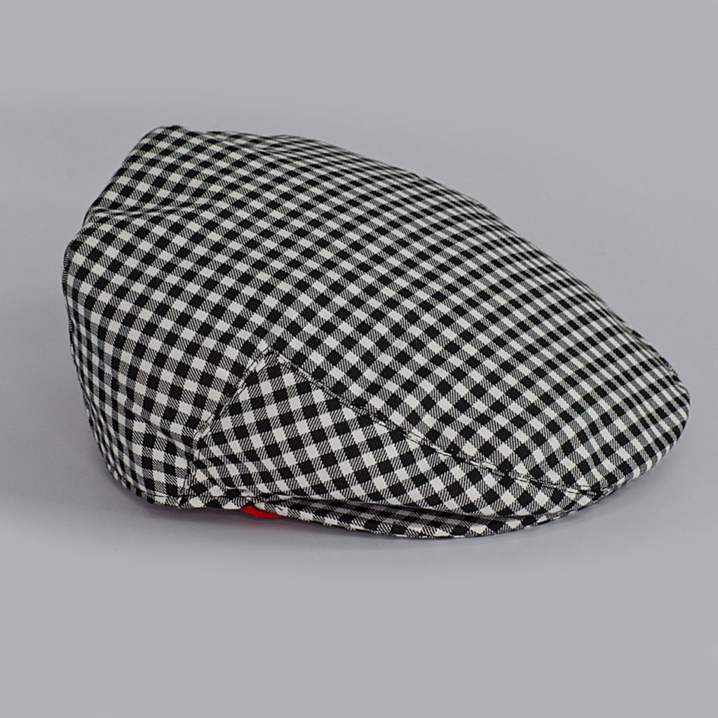 Make a statement with this black and white check flat cap, designed to add a touch of sophistication and edge to your wardrobe. The timeless black and white check pattern creates a sharp, bold look, making it the perfect accessory for any casual for semi-formal outfit.