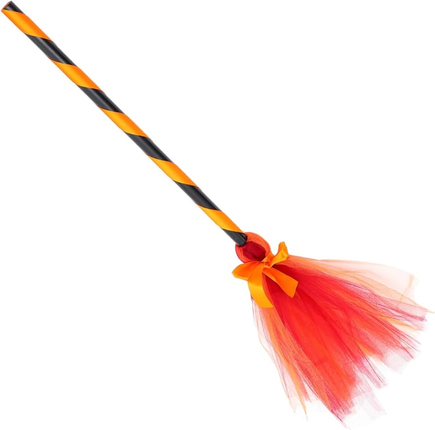 A vibrant orange and black light-up witch broomstick, blending classic Halloween colors with a glowing twist. Perfect for standing out at night events or Halloween parties, this broomstick adds a magical, luminous effect to your witch costume!