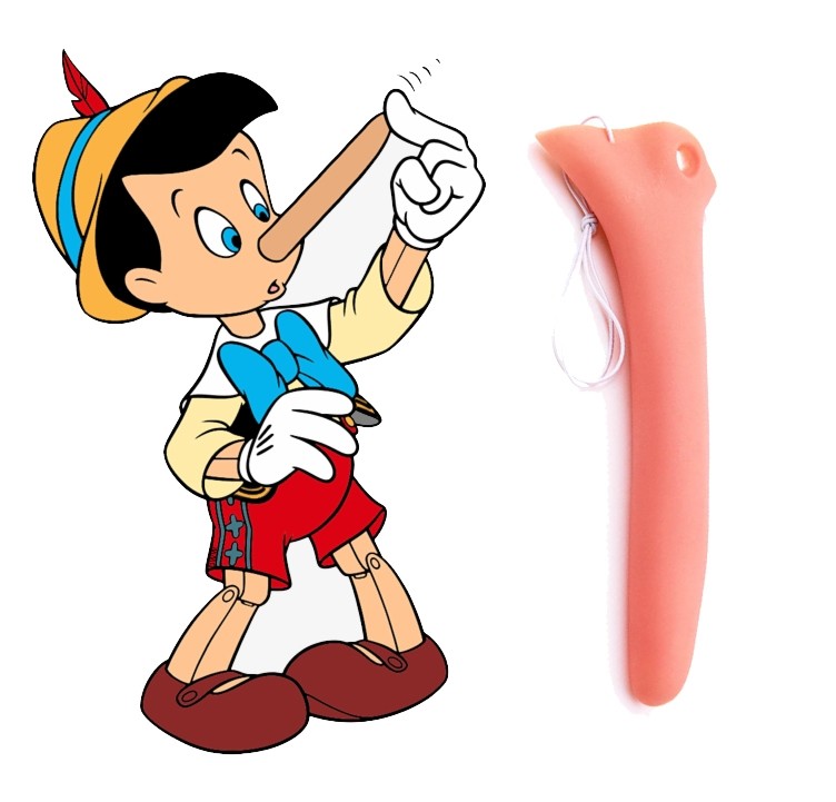 A Pinocchio nose made of lightweight, durable material, designed to be worn as part of a costume for theatrical performance. This nose features a long, pointed shape that extends outward, just like the iconic wooden nose from the classic story. It can be securely attached with adhesive for worn with a headband, adding an authentic touch to your Pinocchio character for themed parties, plays, for Halloween. Perfect for anyone looking to embody the beloved wooden puppet with a bit of fun and creativity!