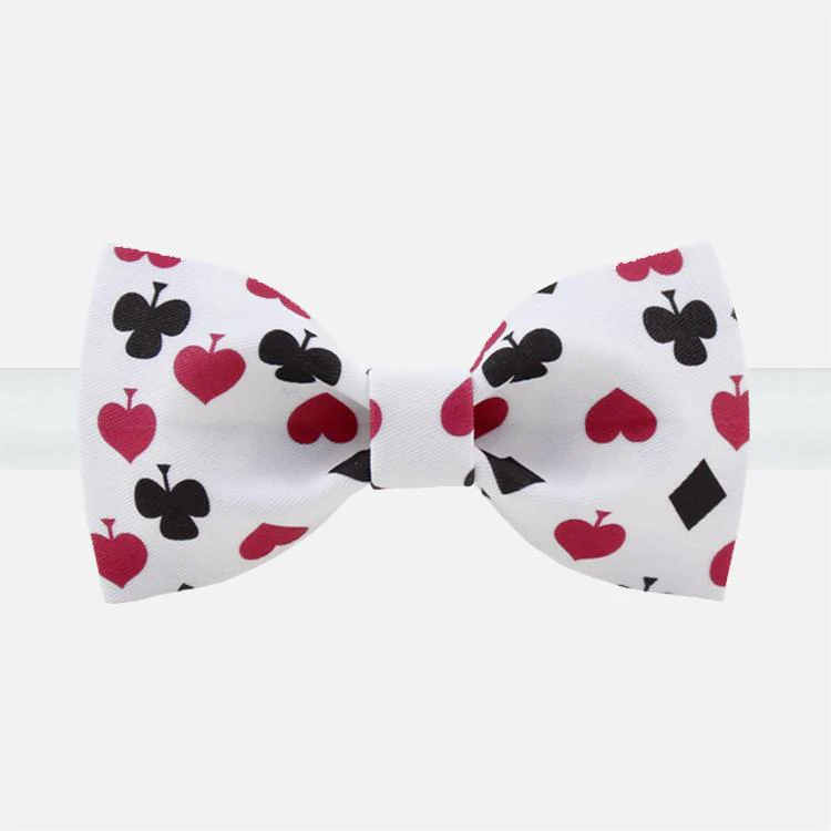 Introducing the Poker Bow Tie: a stylish accessory for the sophisticated card enthusiast. Crafted from premium fabric, this bow tie features an elegant design inspired by classic poker motifs, including spades, hearts, clubs, and diamonds. Perfect for poker nights, themed parties, or adding a playful touch to formal attire. Elevate your wardrobe with the Poker Bow Tie and showcase your love for the game in a fashionable way.