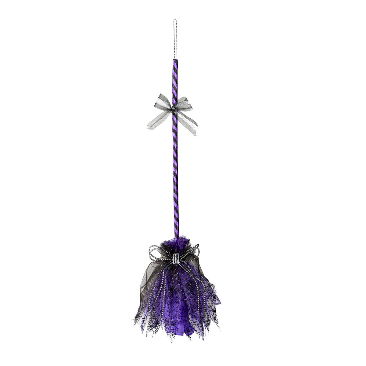 A captivating purple and black light-up witch broomstick, combining eerie elegance with a magical glow. The perfect accessory for Halloween or nighttime events, it adds a stunning visual effect to your witch costume, lighting up the darkness with a touch of enchantment!