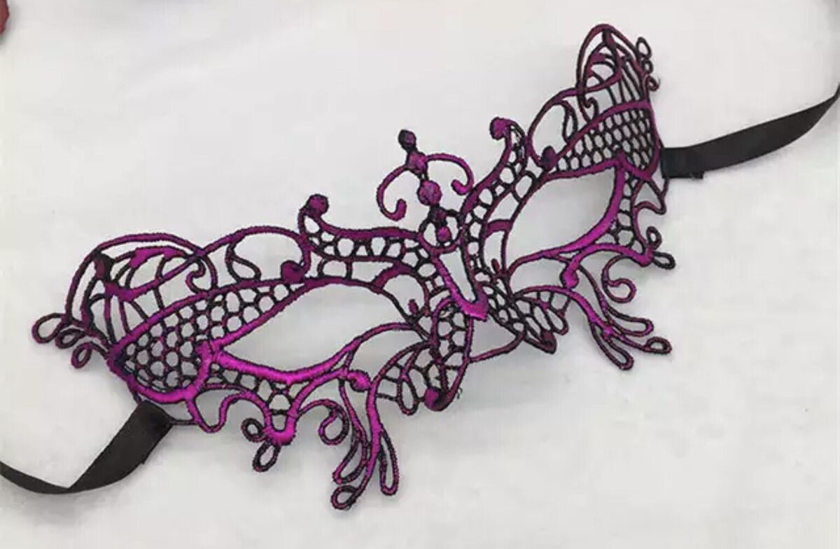 A purple lace mask is an elegant accessory, crafted from intricate lace fabric in a rich purple color. Often used for costumes, special events, or as a fashion statement, it adds a touch of mystery and sophistication.