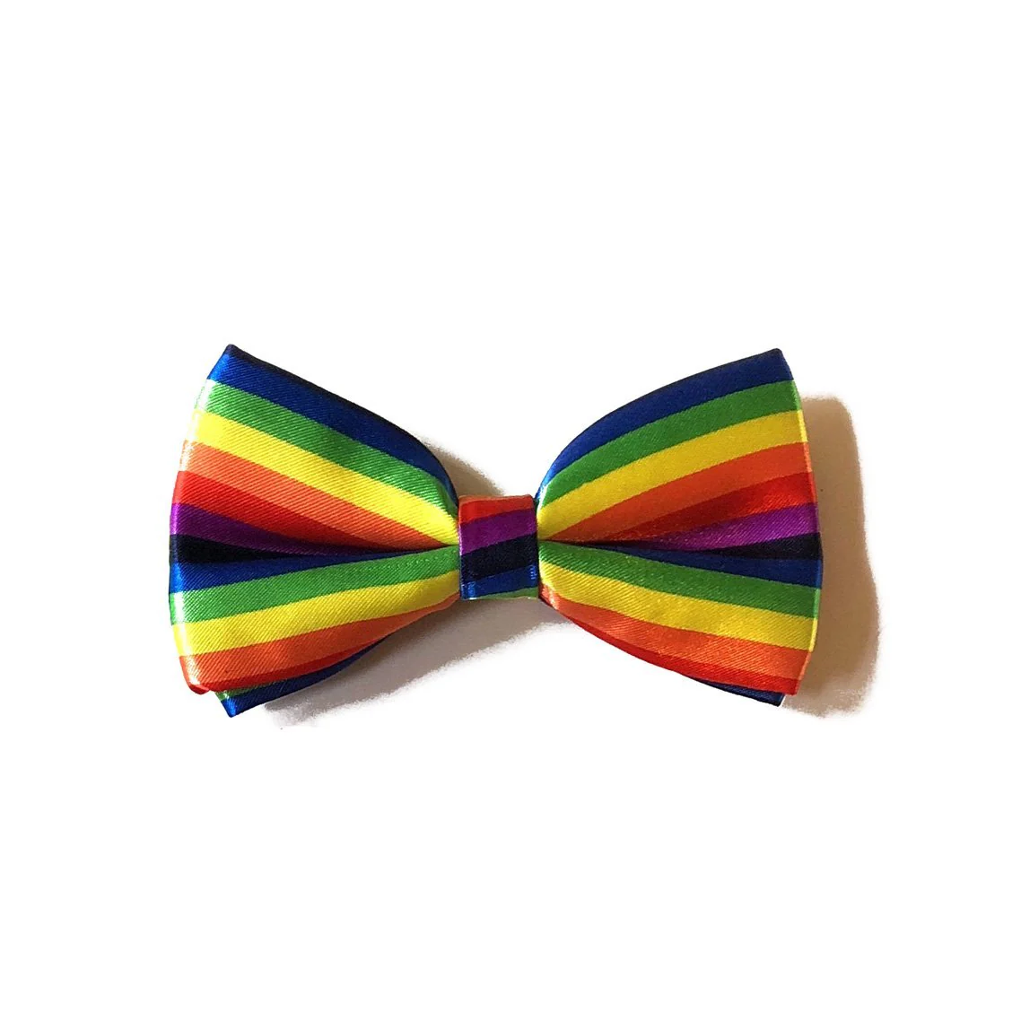 Introducing the Rainbow Bow Tie: a vibrant and eye-catching accessory that celebrates diversity and pride. Crafted from premium fabric, this bow tie showcases a stunning array of rainbow colors, perfect for Pride events, celebrations, or adding a bold statement to any outfit. Stand out and show your support with the Rainbow Bow Tie, a symbol of unity and inclusion.