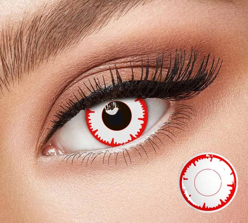 Red Floret Contact Lenses (White with Red Detail Around the Edge) feature a clean white base with vivid red detailing around the edges. The red accents create a bold, dramatic look, enhancing your eyes with a striking contrast. Perfect for cosplay, Halloween, for themed events, these lenses provide a unique and intense effect, giving your eyes a captivating appearance.