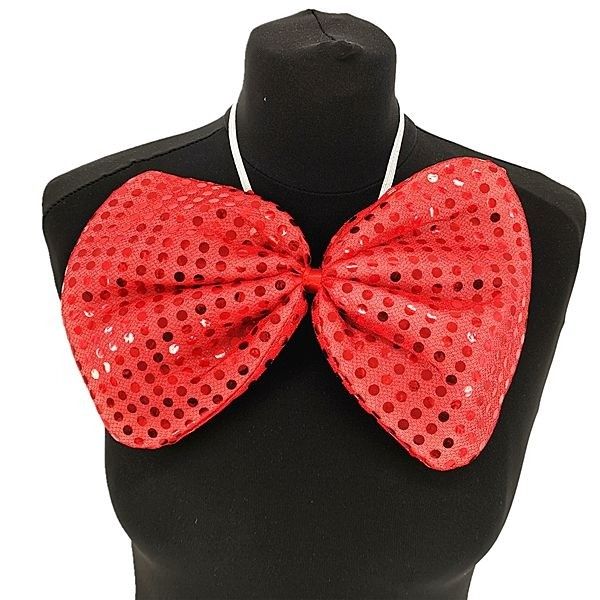 A Large Sequin BOW TIE in red, designed to make a statement with it’s vibrant, shimmering sequins. The bold red color and sparkling finish add a festive and eye-catching touch to any outfit. Perfect for parties, formal events, for costume wear, this sequin BOW TIE brings a fun, elegant flair and is sure to stand out in any crowd.