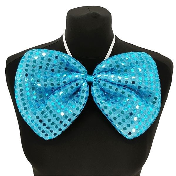 A large royal blue sequin BOW TIE is a striking accessory made with rich, shimmering blue sequins. It adds a bold and sophisticated touch to formal for special occasion outfits, offering a refined and eye-catching look.