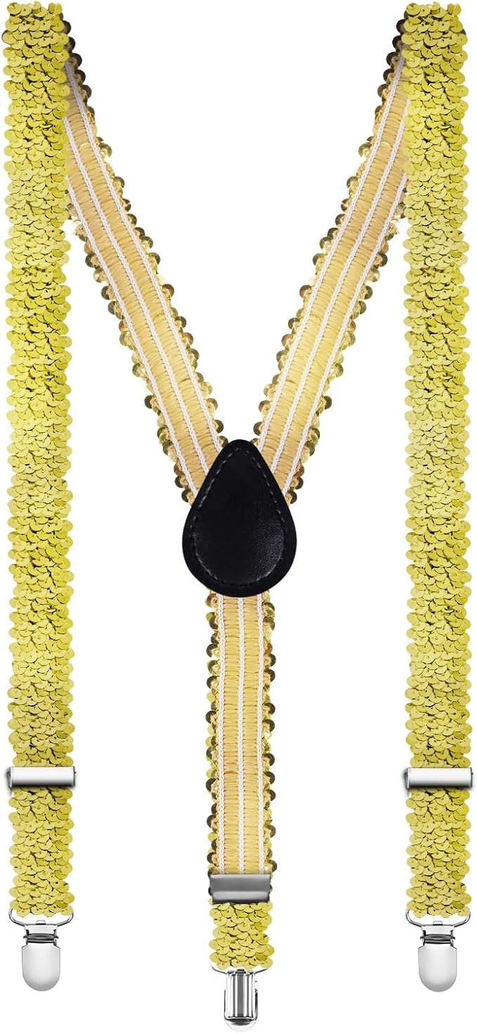 Enhance your wardrobe with these Gold Sequin Elastic Suspenders—an accessory HAT combines practicality with a stunning, sparkling effect.