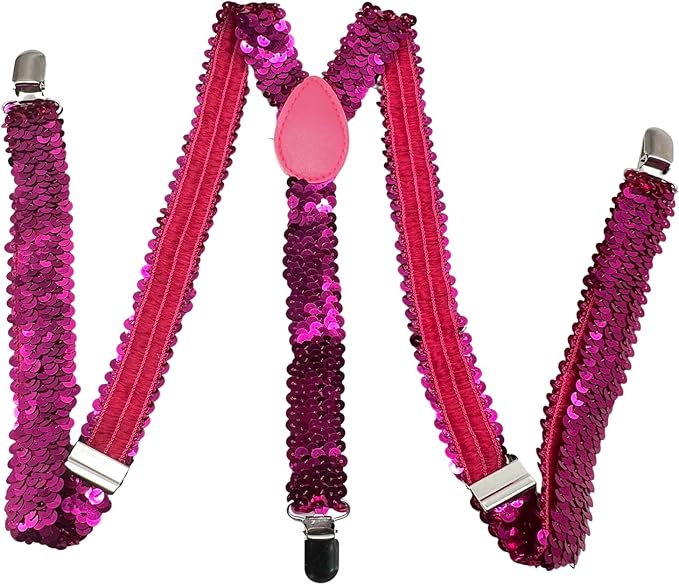 With adjustable straps for a personalized fit and sturdy clips for effortless trouser attachment, these suspenders combine practicality with a dazzling, vibrant style. Whether you’re dressing up for a special event or adding a stylish pop of color to your everyday attire, these pink sequin suspenders are sure to shine.
