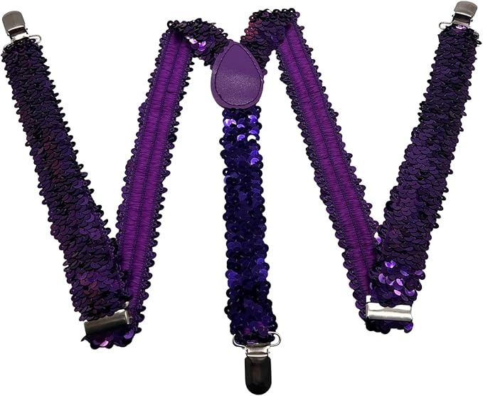 Enhance your wardrobe with these Sequin Purple Elastic Suspenders—an accessory HAT combines practicality with a striking, royal shimmer.