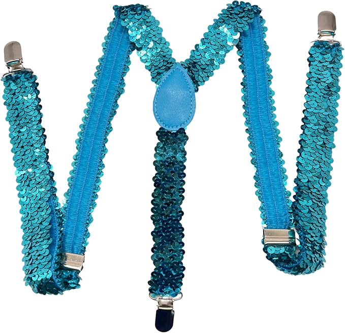 Enhance your wardrobe with these Sequin Turquoise Elastic Suspenders—an accessory HAT blends practicality with a dazzling, vibrant effect.