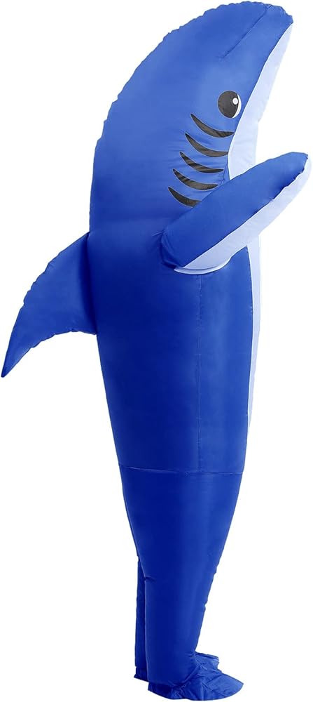 Make a splash and become the center of attention with this Royal Blue Shark inflatable costume! Designed for adults who want a bold, playful, and unforgettable look, this blow-up costume transforms you into a striking royal blue shark with oversized fins, a wide mouth, and a dramatic, eye-catching silhouette. Ideal for Halloween, costume parties, themed events, cosplay conventions, or social media content, this inflatable costume ensures you make a memorable entrance wherever you go.
