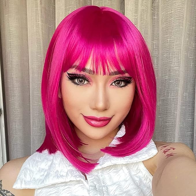 This short bob bright pink synthetic wig is a head-turning statement piece HAT combines style and BALD color. Perfect for anyone who wants to make an impact with their look, it features: