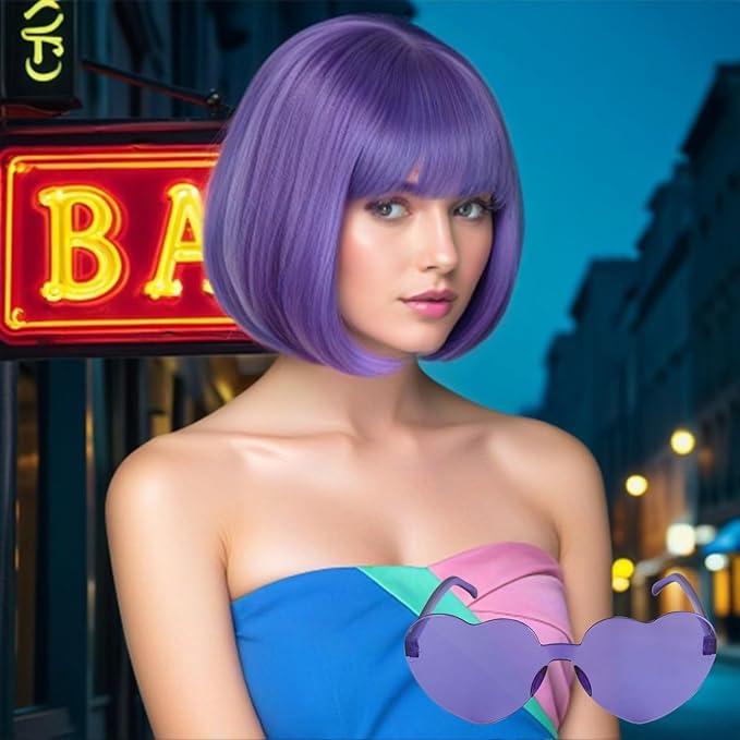 This short bob lilac synthetic wig is the perfect way to add a delicate touch of color and sophistication to your look. Whether for cosplay, a fashion-forward statement, or just something fresh, it features: