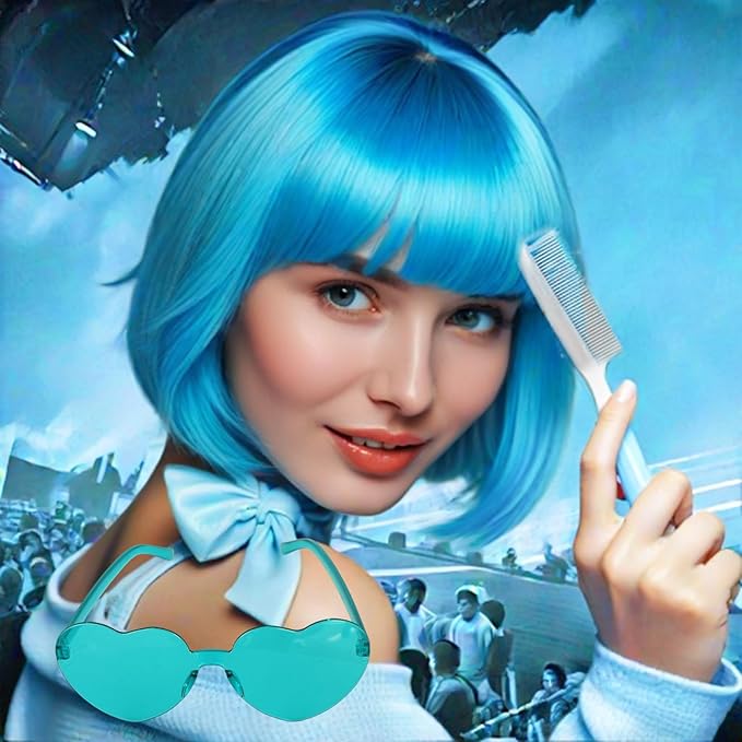 This short bob turquoise synthetic wig is designed for those who want to make a standout statement. Perfect for cosplay, festivals, or adding a fun twist to your style, it features: