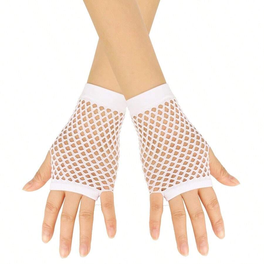Introducing Short white Net Gloves  bold and vibrant accessories that add a pop of color and flair to any outfit. Crafted with lightweight red netting, these gloves offer a stylish and eye-catching look, perfect for making a statement at parties, concerts, or special events. Ideal for adding a touch of edgy sophistication to your ensemble.