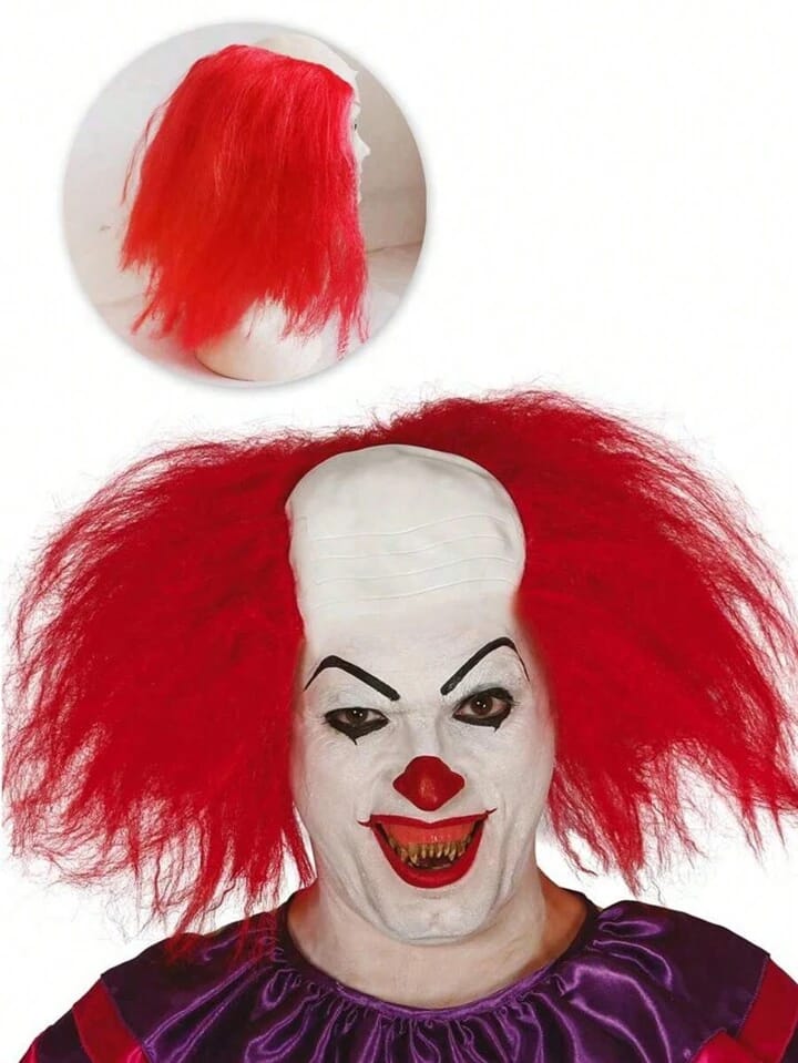 A vibrant red clown skull cap wig designed for a fun and playful look. This wig fits snugly over the head, featuring bright red hair styled in a classic clown shape, perfect for costume parties, performances, or Halloween. Its bold color and unique style make it a standout accessory for anyone looking to add a touch of whimsy to their outfit.