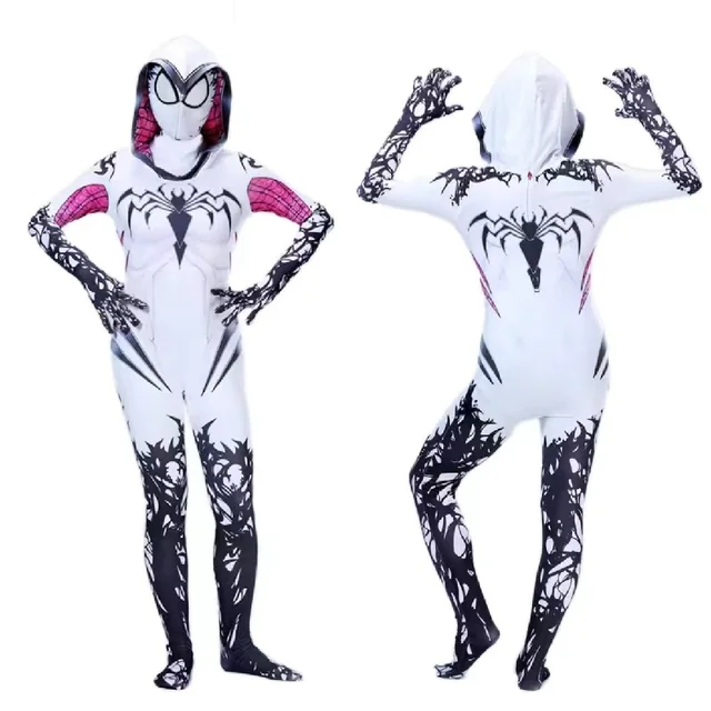 Transform into the dynamic Spider-Gwen with this full jumpsuit featuring a hood and cloth mask. Perfect for Halloween, cosplay events, or themed parties, this costume captures the essence of Spider-Gwen with its vibrant design and iconic elements. The jumpsuit includes intricate details and a comfortable fit, allowing fans of all ages to embody the adventurous spirit of this beloved character.