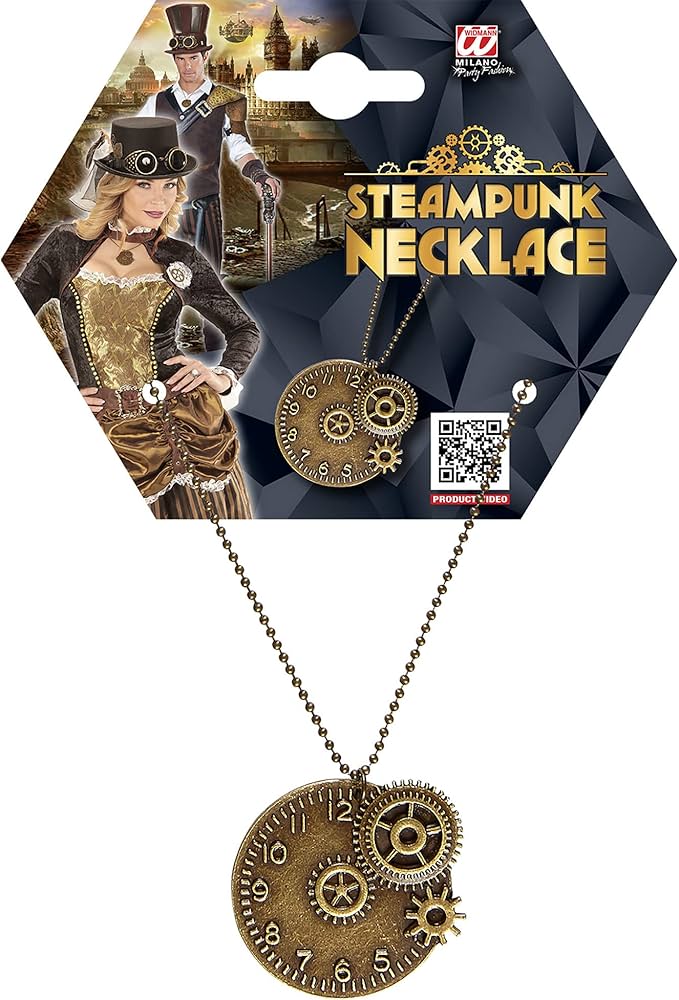 Steampunk Bronze Clock Necklace with Gears – A vintage-inspired bronze necklace featuring an intricate clock design with gears. Perfect for adding a touch of steampunk style to any outfit!