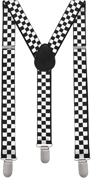 Enhance your wardrobe with these Black and White Checked Elastic Suspenders—an accessory HAT blends practicality with a distinctive, eye-catching design.