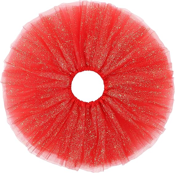 40 cm Red Glitter Tutu: Make a bold statement with this vibrant red tutu, featuring soft tulle layers, glittering accents, and a comfortable elastic waistband. Perfect for parties, costumes, and dance performances!