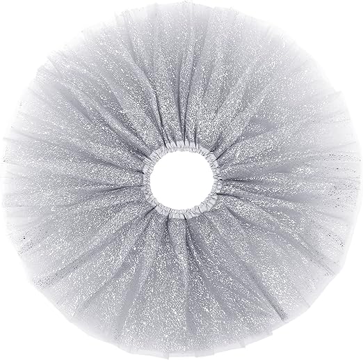 40 cm Silver Glitter Tutu: Shine bright with this stunning silver tutu, featuring soft tulle layers, sparkling glitter accents, and a comfortable elastic waistband. Perfect for parties, costumes, and dance performances!