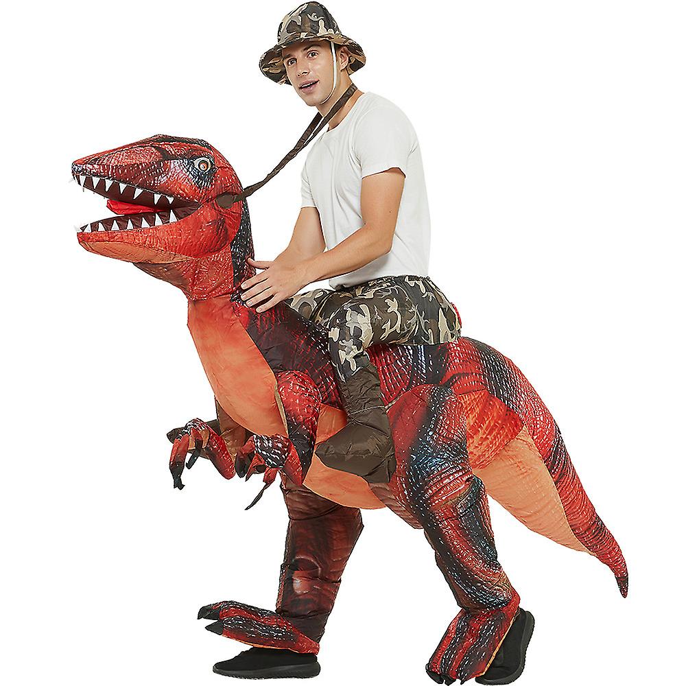 The Red Velociraptor Ride-On Inflatable Costume creates the hilarious illusion that the wearer is riding a giant dinosaur. This inflatable outfit attracts attention instantly at parties and themed events. The bold red dinosaur design stands out in any crowd.