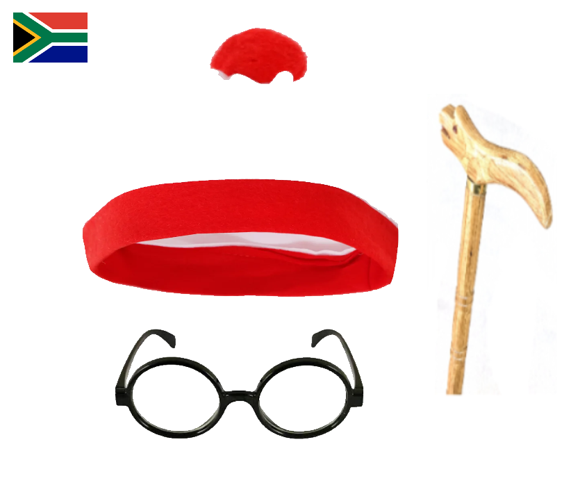 Wally costume set for sale in Johannesburg & nationwide. Includes glasses, hat & cane. Perfect for book day, dress-up & themed events.