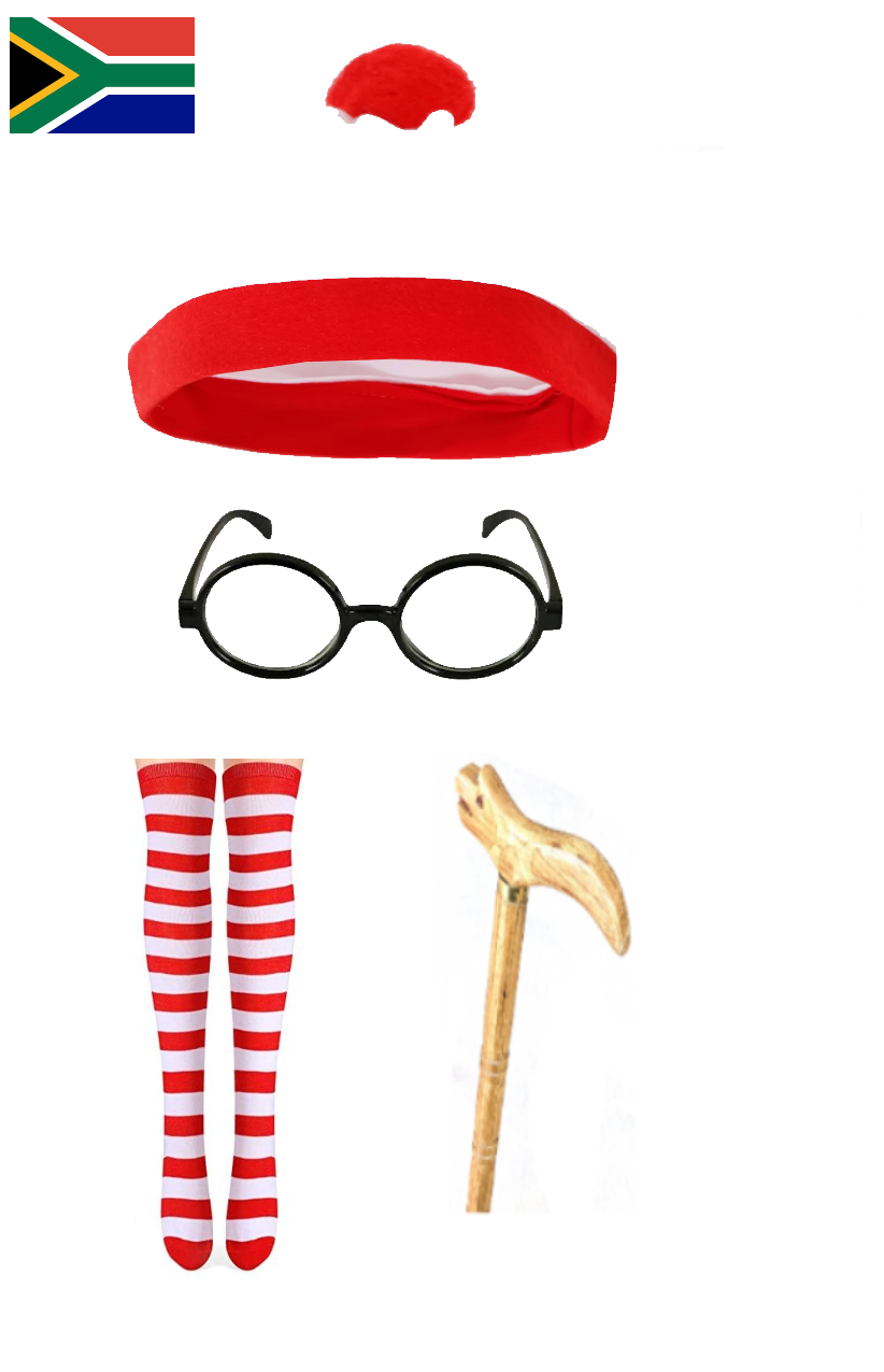 Where Wally ladies costume set for sale in Johannesburg & nationwide. Includes glasses, hat, cane & striped knee highs. Perfect for dress-up & events.