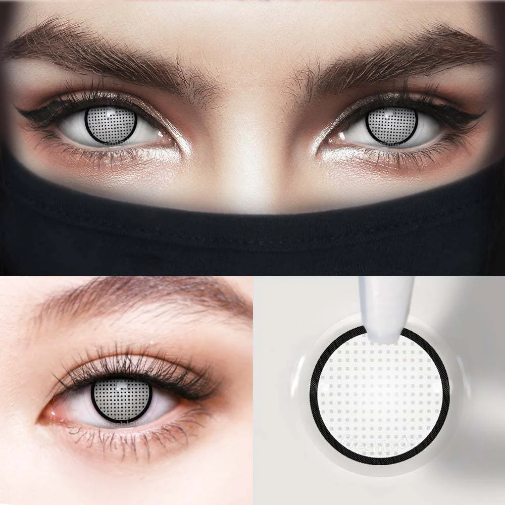 Achieve an eerie, dramatic look with White Manson Mesh Contact Lenses. These lenses feature a solid white color with a unique mesh design, giving your eyes an intense, mysterious appearance while still allowing for some vision clarity. Perfect for costume parties, cosplay, for creating a spooky effect for theatrical performances, these lenses combine both style and comfort. Available in prescription and non-prescription options, they provide excellent vision correction while transforming your eye color to a striking white mesh. Ideal for those looking to make a bold, unforgettable statement with an otherworldly touch!