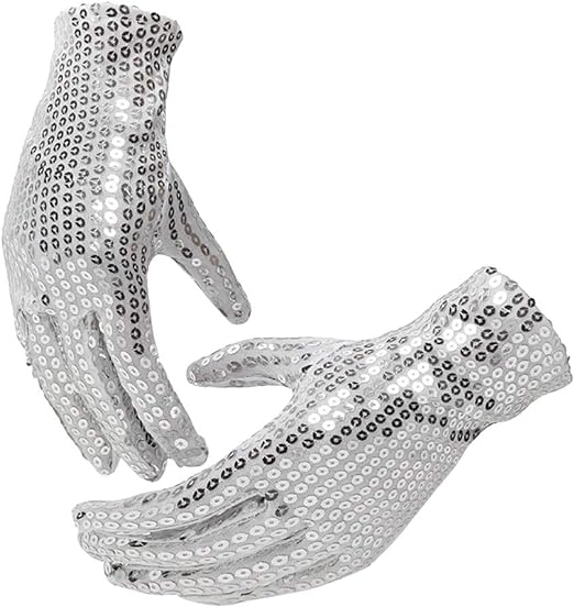 Introducing Short silver/whiteSequin Gloves stylish and eye-catching accessories perfect for adding a vibrant touch to any outfit or costume. Crafted with shimmering green sequins, these gloves offer a snug fit and dazzling sparkle, ideal for formal events, costume play, or adding flair to everyday wear.