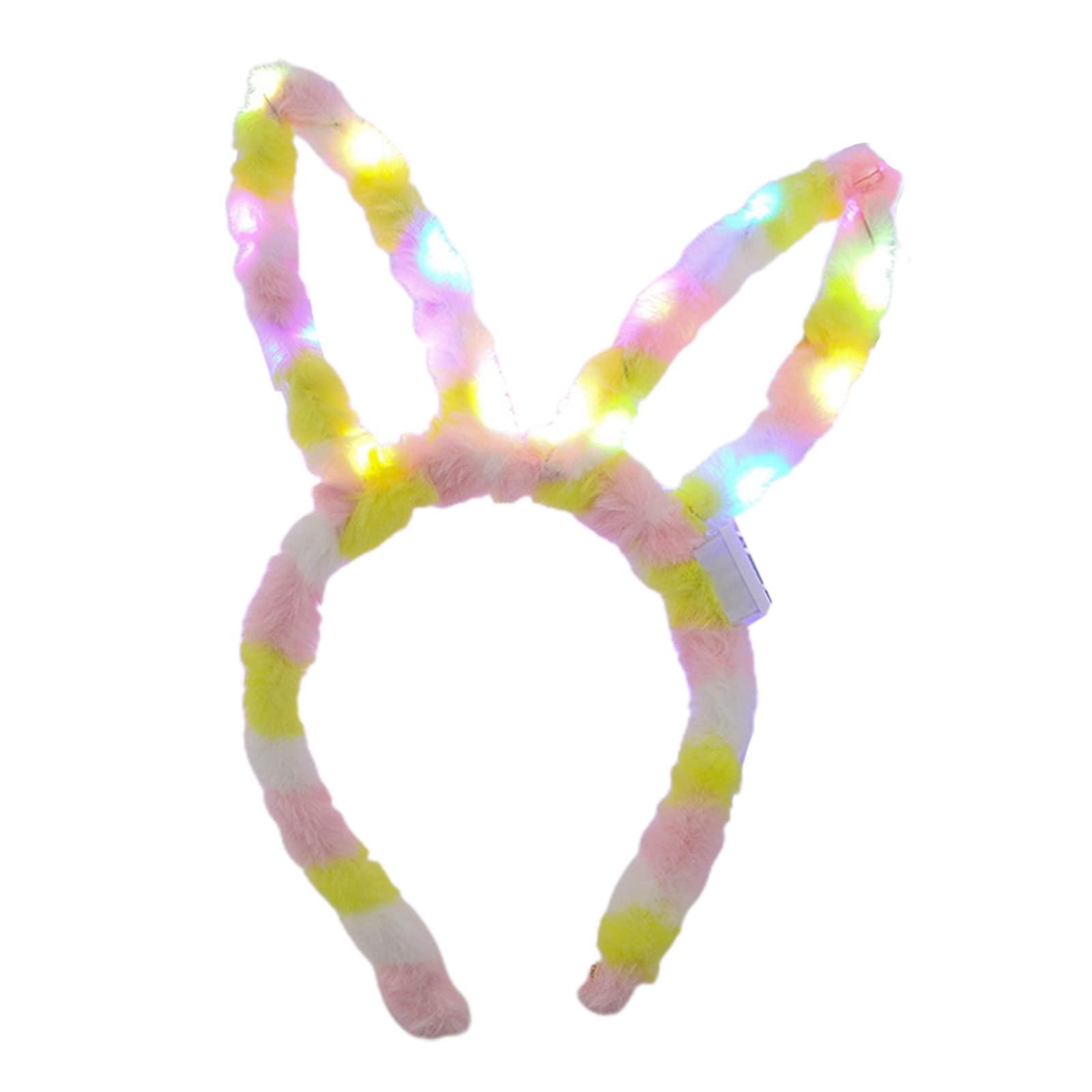 yellow lighting up bunny ears are a bright and cheerful accessory, featuring soft yellow fabric with built-in lights that make the ears glow. These glowing ears add a playful and energetic touch to costumes, headbands, for themed outfits, making them perfect for parties, festivals, for any event where you want to stand out with a fun and vibrant illuminated look.